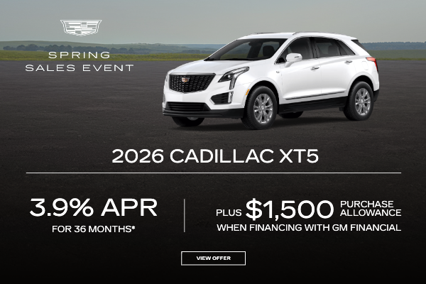 Looking for 2026 Cadillac XT5 financing deals in Indio? Take advantage of 3.9% APR for 36 months plus a $1,500 purchase allowance when financing with GM Financial. This limited-time offer at Jessup Cadillac provides exceptional value on the latest luxury SUV models. Visit us in the Coachella Valley to claim your purchase allowance and drive home in a new 2026 XT5 today.