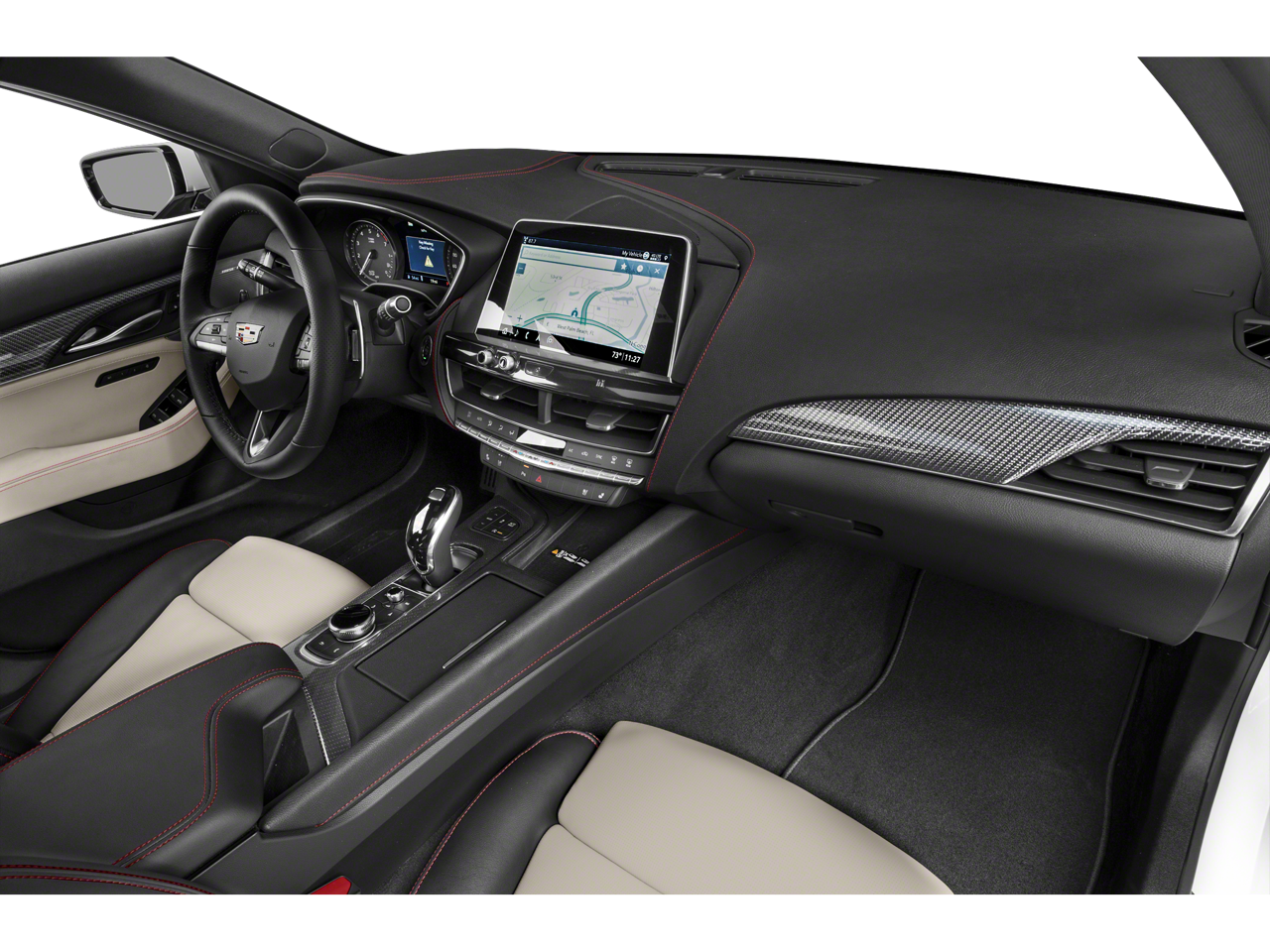 Climate Package: Driver Power Lumbar Massage Seat; Automatic Heated Steering Wheel; Heated Driver and Front Passenger Seats; Front Passenger Power Lumbar Massage Seat; Ventilated Driver and Front Passenger Seats. Driver Awareness Plus Package: 8" Diagonal Color Reconfigurable DIC Display; Lane Keep Assist with Lane Departure Warning; Head-Up Display; Following Distance Indicator; IntelliBeam Automatic High Beam On/off. Lighting Package: Illuminating Front Sill Plates; Front Cornering Lamps; Illuminating Door Handles. Preferred Equipment Group 1SE: HD Rear Vision Camera; Manual Tilt and Telescoping Steering Column; Dual Diagonal Color Driver Information Center; Automatic Emergency Braking; Body-Color Heated Power-Adjustable Outside Mirrors; Inside Rearview Auto-Dimming Mirror; Rear Park Assist; LED Reflective Windshield Alert. Navigation and Bose Premium Audio Package: 8" Diagonal Color Reconfigurable DIC Display; Cadillac User Experience Radio with Embedded Navigation. 20" Painted Alloy with Gloss Black Finish Wheels. Leather-Appointed Seating Surfaces. UltraView Dual Pane Sunroo