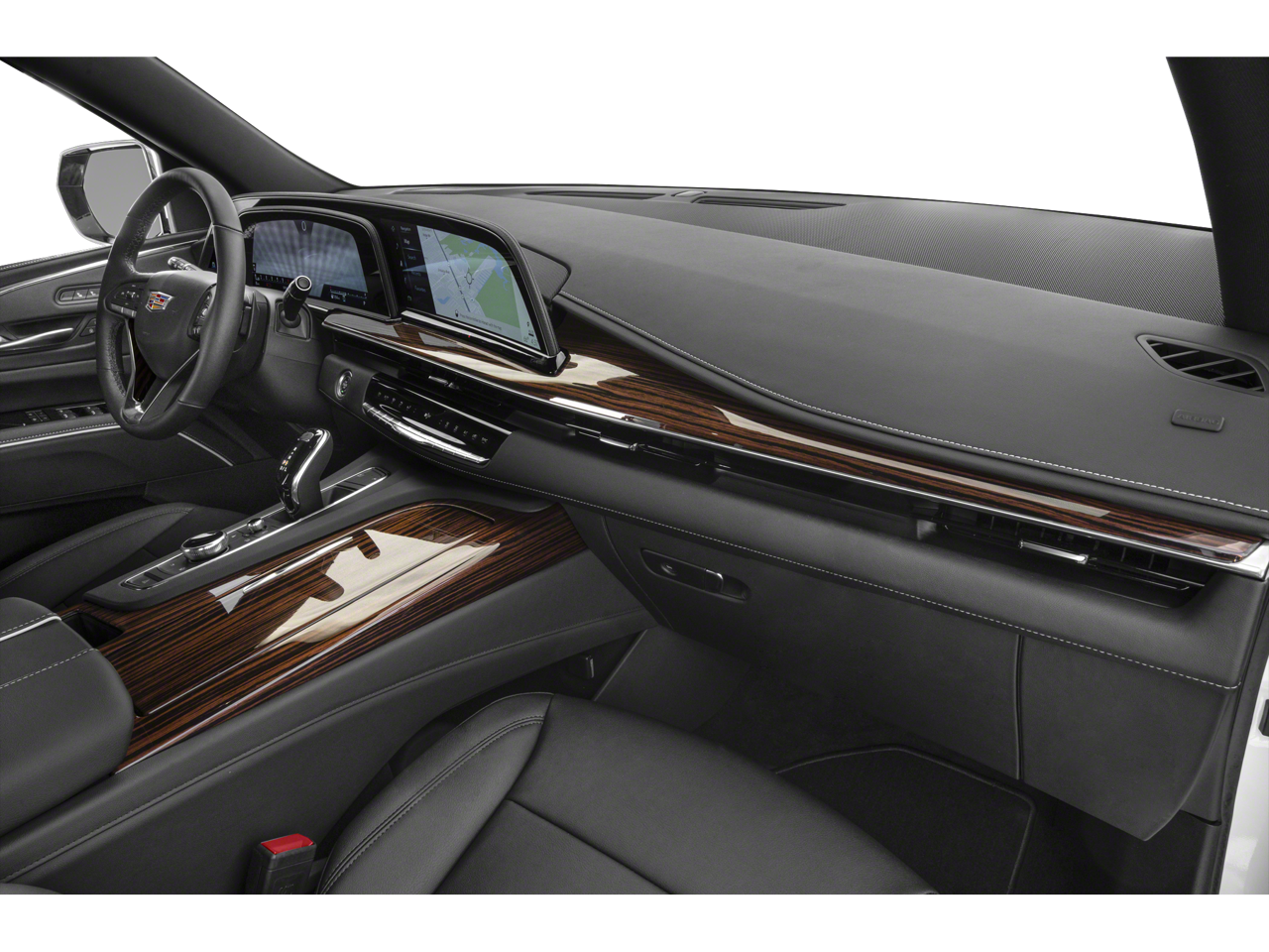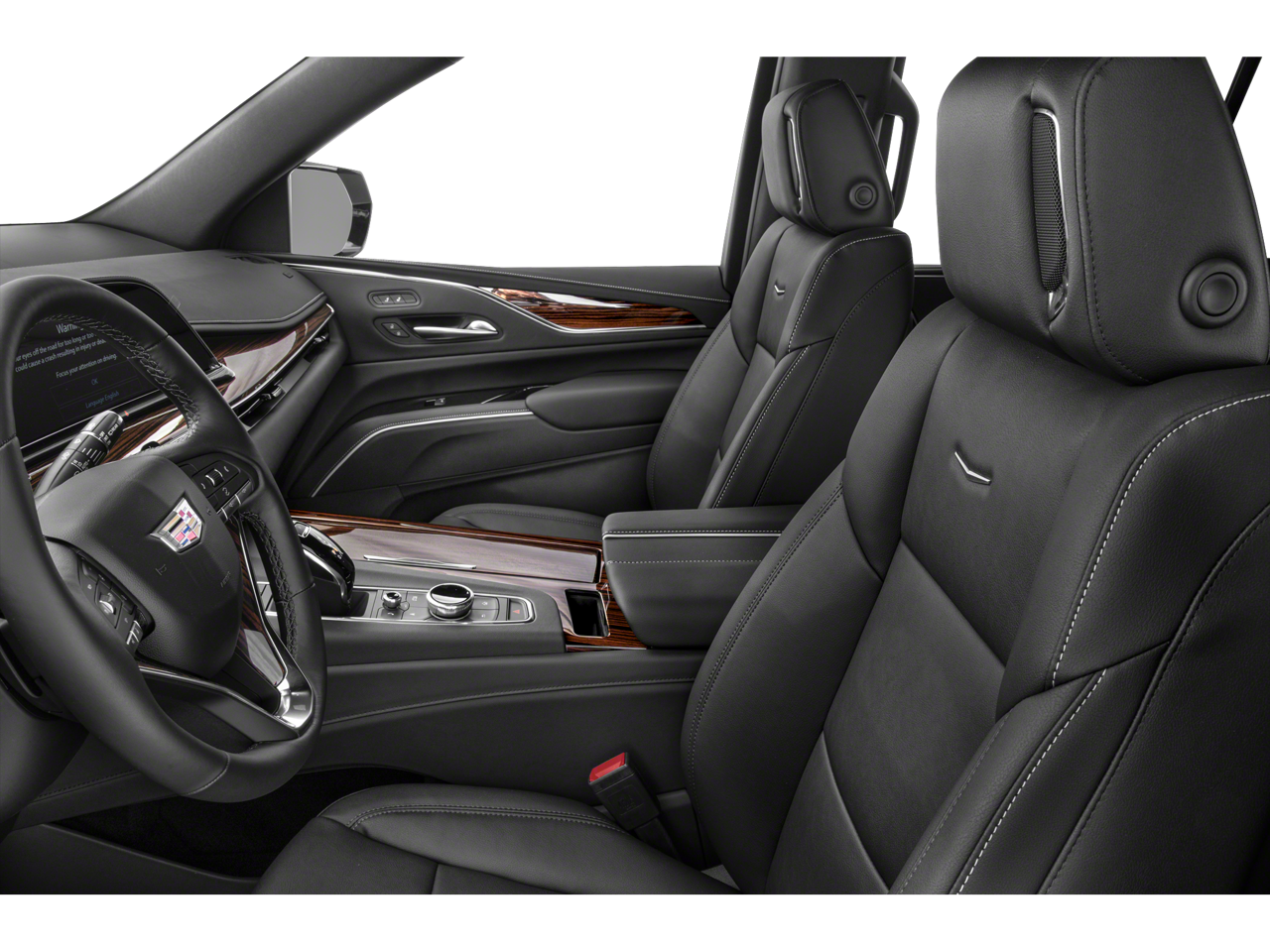 Radiant Package: 22" 12-Spoke Chrome Alloy Wheels; Bright Sport Mesh Grille; Monochrome Cadillac Emblems; Puddle Lamps with Cadillac Crest. Preferred Equipment Group 1SB: Lane Keep Assist with Lane Departure Warning; Power Panoramic Tilt-Sliding Sunroof; Mechanical Limited-Slip Differential; Door Lock and Latch Shields; Enhanced Automatic Parking Assist; Automatic Emergency Braking; Lane Change Alert with Side Blind Zone Alert; Rear Camera Mirror Washer; Electronic Cruise Control with Set and Resume Speed; Rear Camera Mirror; Single-Speed Active Transfer Case; Running Board Assist Steps; Air Ionizer; Theft-Deterrent Alarm System; Reconfigurable Full-Color Head-Up Display; AKG Studio 19-Speaker Audio System; Vehicle Interior Movement Sensor; Rear Cross Traffic Alert; Vehicle Inclination Sensor; Glass Breakage Sensor; Premium Smooth Ride Suspension. Full Leather Seats with Faceted Quilting. 22" 12-Spoke Chrome Alloy Wheels. Rear Seat Entertainment System. Bright Sport Mesh Grille. Satin Steel Metallic. Black Roof Rack Cross