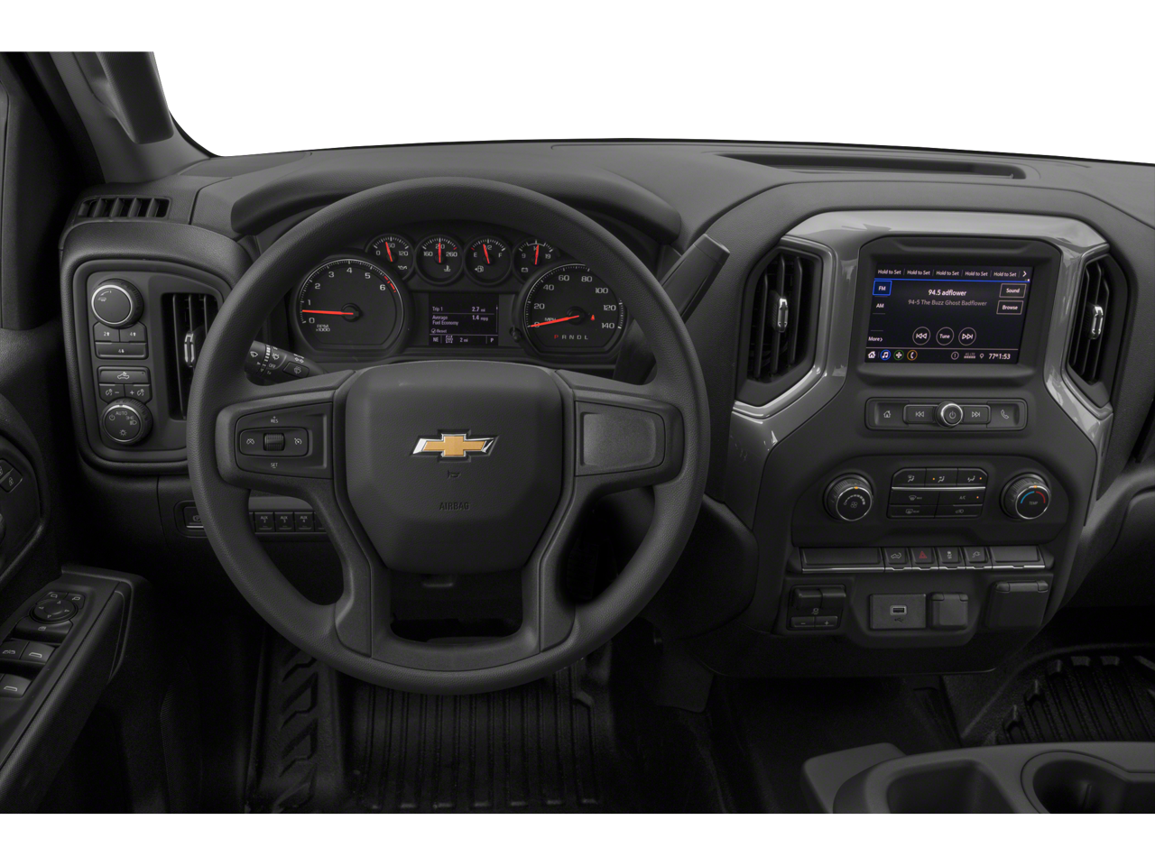 WT Convenience Package: Remote Keyless Entry; Deep-Tinted Glass; Heated Vertical Trailering Mirrors; Electric Rear-Window Defogger; Electronic Cruise Control with Set and Resume Speed. Preferred Equipment Group 1WT: Black Mirror Caps; Rear 60/40 Folding Bench Seat (folds Up); 17" Silver Painted Steel Wheels; Bluetooth® For Phone; Black Front Bumper; Solar Absorbing Tinted Glass; 170 Amp Alternator; Power Rear Windows with Express Down; Manual Tailgate Function with No EZ Lift; Manual Tilt-Wheel Steering Column; Black Front Grille; Black Rear Bumper; High-Visibility Vertical Trailering Mirrors; Front 40/20/40 Split-Bench Seat with Storage; 3.5" Diagonal Monochromatic Display DIC; Rubberized-Vinyl Floor Covering; Locking Tailgate; LT245/75R17E AS BW Tires. Spare LT245/75R17E AS BW Tire. Integrated Trailer Brake Controller. Electronic Cruise Control with Set and Resume Speed. Electric Rear-Window Defogger. Chrome Front Bumper. Deep-Tinted Glass. OnStar and Chevrolet Connected Services Capable. SiriusXM Radio. SEO: Rear Camera Kit. SEO: Back-Up Alarm Calib