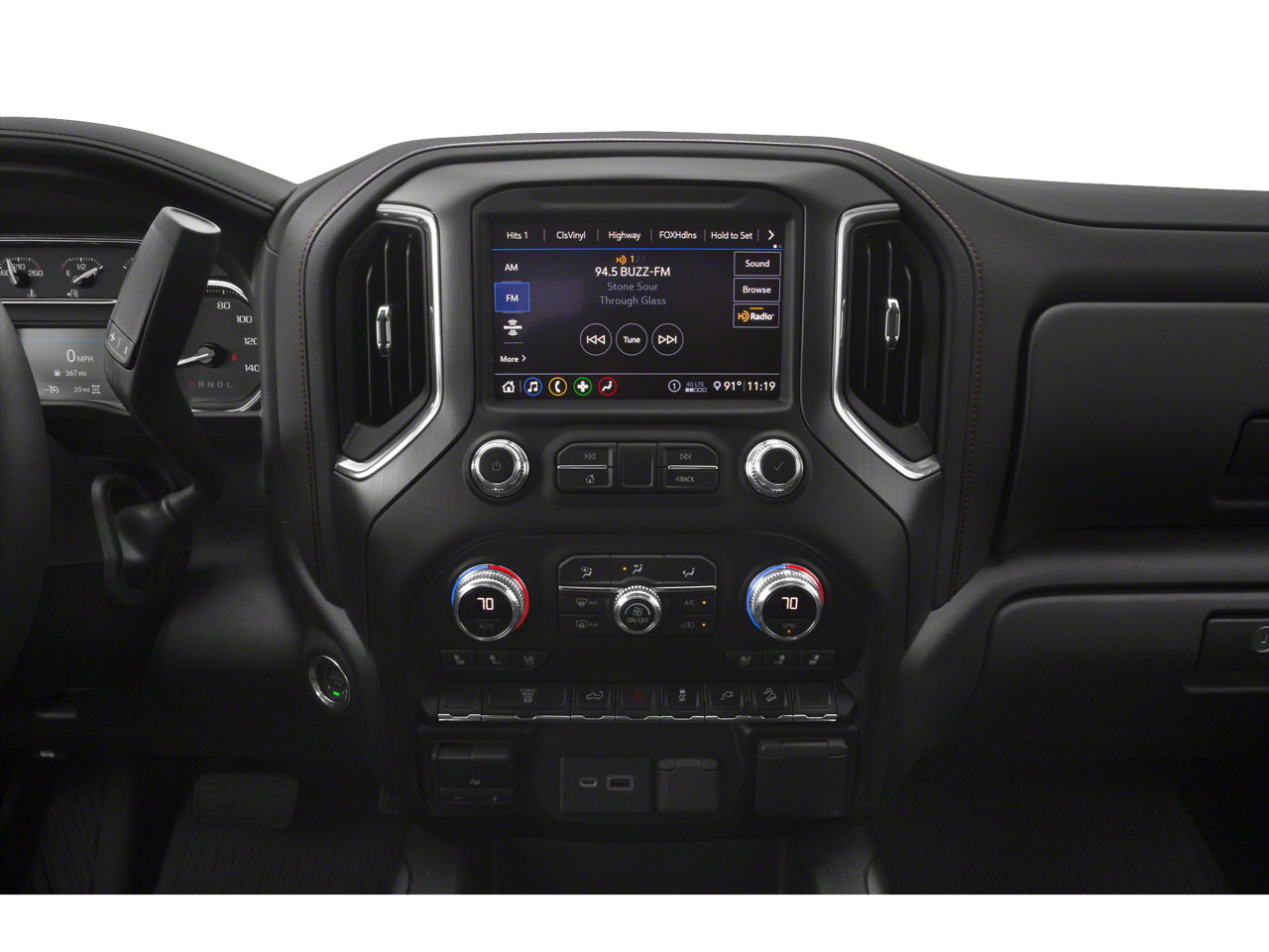Cargo Convenience Package: Console-Mounted Safe; Rear Underseat Storage. Driver Alert Package I: Ultrasonic Front and Rear Park Assist; Rear Cross Traffic Alert; Lane Change Alert with Side Blind Zone Alert; Perimeter Lighting. Driver Alert Package II: Forward Collision Alert; Following Distance Indicator; Automatic Emergency Braking; Safety Alert Seat; IntelliBeam Automatic High Beam On/off; Lane Departure Warning. AT4 Preferred Package: HD Surround Vision with 2 Trailer View Camera Provisions; Bose Premium 7 Speaker Sound System; Power Sliding Rear Window with Defogger; Wireless Charging; Bed View Camera with Two Trailer Camera Provisions; Universal Home Remote; AM/FM Stereo with Premium GMC Infotainment System and Navigation. Preferred Equipment Group 4SB: HD Rear Vision Camera; LED Cargo Area Lighting; Remote Vehicle Starter System; 2 USB Ports (1st Row); Electric Rear-Window Defogger; Wireless Phone Projection; Floor-Mounted Center Console; Unauthorized Entry Theft-Deterrent System; Painted Black Surround Grille; Compass Located in Instrument Cluster; 4.2" Diagonal Color Displa